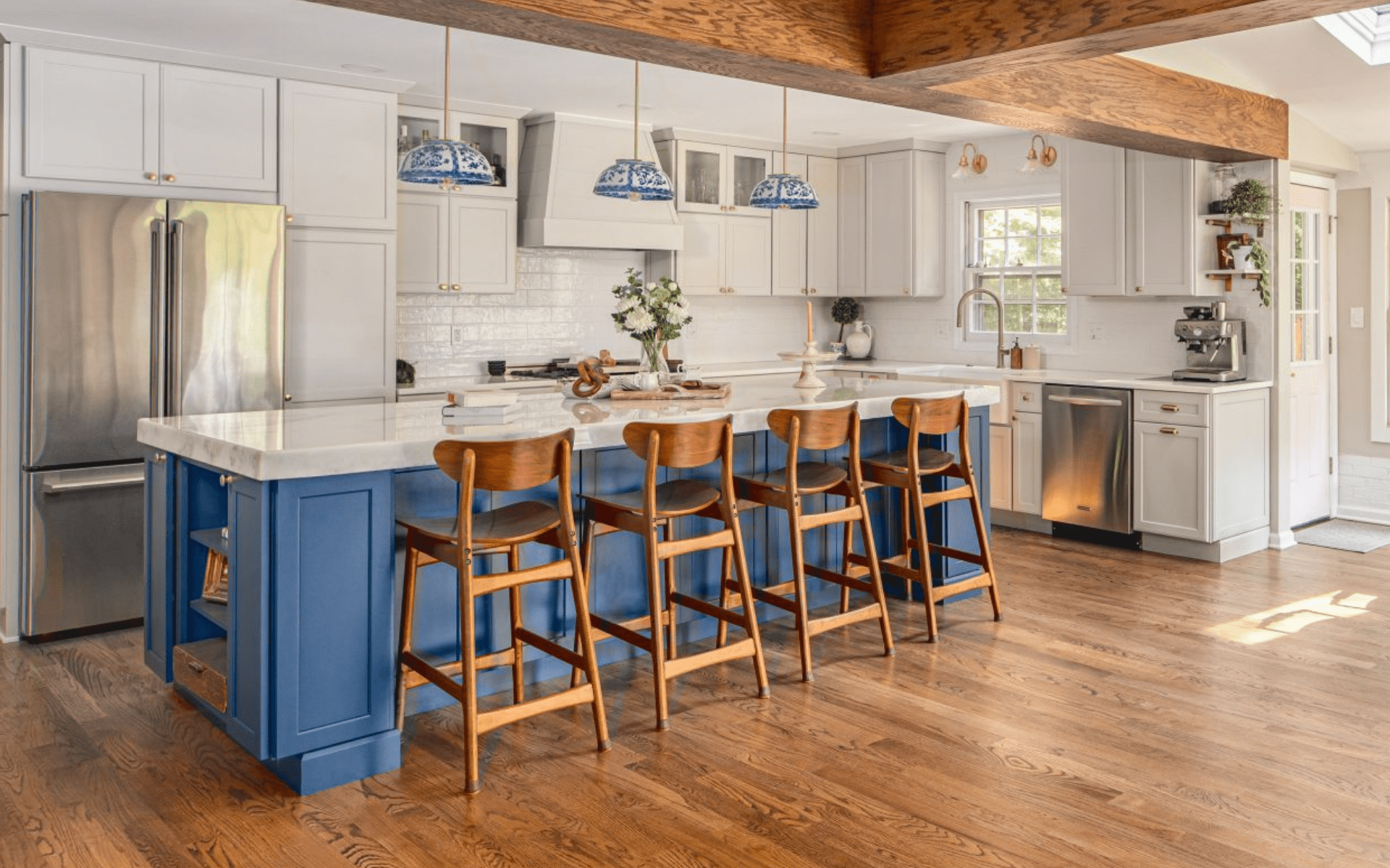 Modern families need kitchens that work overtime, and bar stools around your kitchen island deliver exactly that flexibility. Whether it’s kids doing homework, parents working from home, or casual family meals, comfy seating around your island solve so many daily challenges. We love how children naturally gravitate toward the kitchen when there’s a good spot to sit and get help with school projects. Plus, quick breakfasts and after-school snacks happen much more easily when you have casual seating that doesn’t require setting the dining room table.