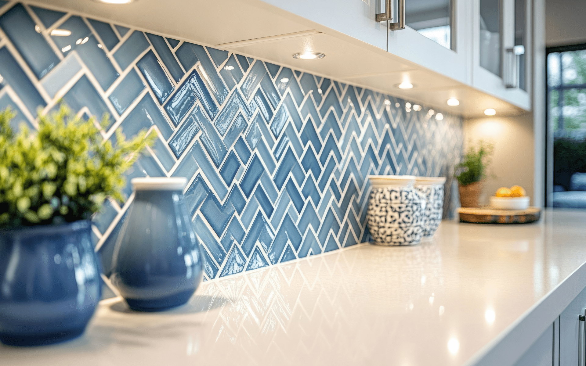 4. Herringbone Pattern Backsplash